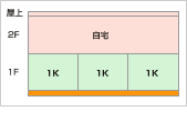 1階が自宅なので、オーナーは庭のある暮らしを楽しめます。また、階段の上り下りが少なく、ご高齢の方や高齢化に備えたい方に適した住み方です。